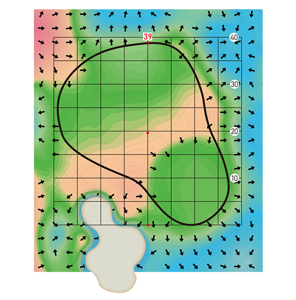 레이크코스 마지막 홀은 페어웨이 시작지점부터 그린까지 오르막으로 형성되어있다. 우측 카트길에 볼이 가지않도록 주의한다. 세컨지점에서는 오르막 라인에 걸릴 수 있으니 한클럽 길게 플레이 하는 것이 온그린에 유리하다. 그린은 2단 그린이다.